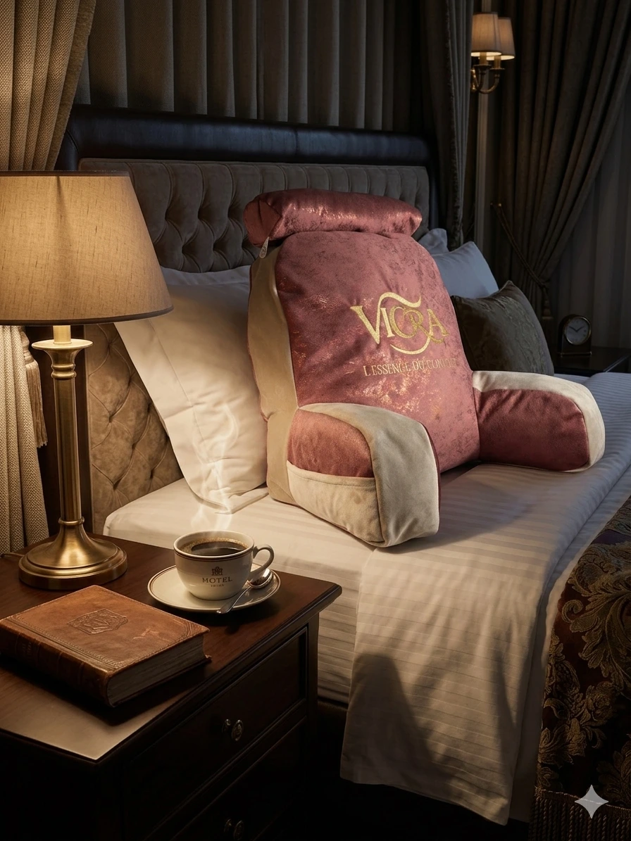 وسادة دعم فاخرة باللون الوردي، صُمّمت لتحتضن الظهر والرقبة بانسجامٍ أنيق، وتمنح تجربة جلوس ترتقي إلى مستوى الرفاهية اليومية.